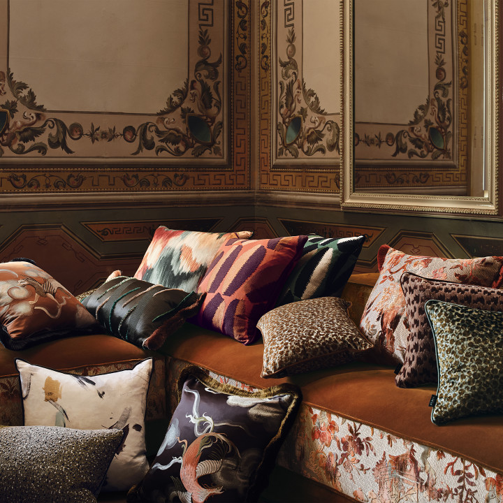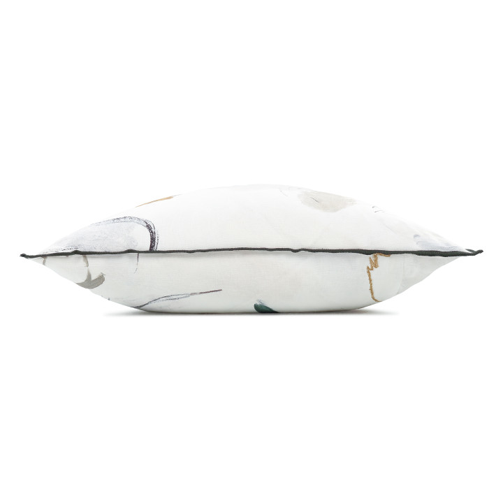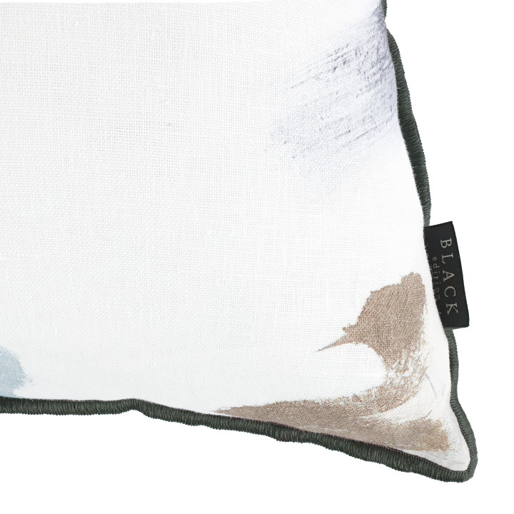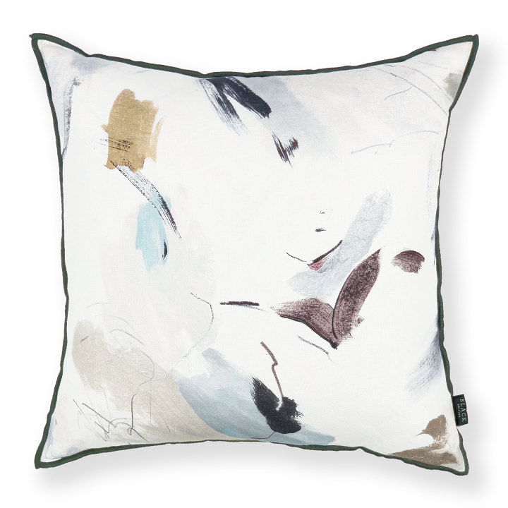 An abstract cushion with contemporary flair sees bold brushstrokes flow effortlessly across the indulgent soft linen surface to capture a dynamic sense of movement.