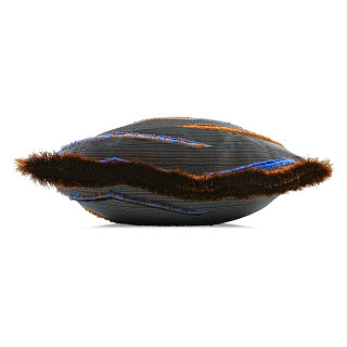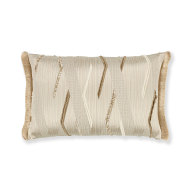 A statement geometric cushion crafted using a specialised fil coupé technique which sits on a fine linear ground formed from a unique combination of lustrous yarns, enriched with a luxurious brush fringe detailing.