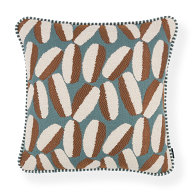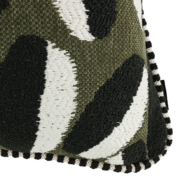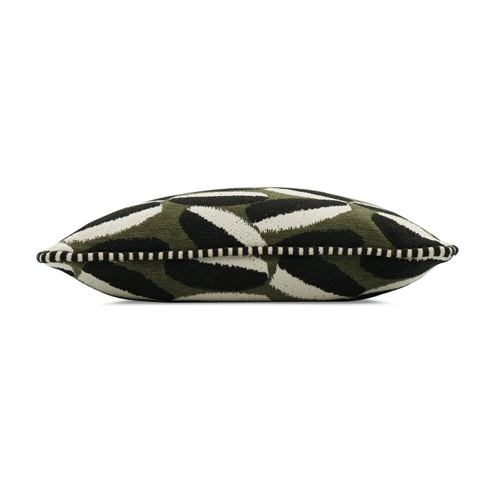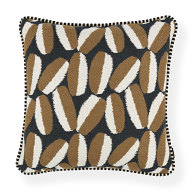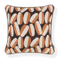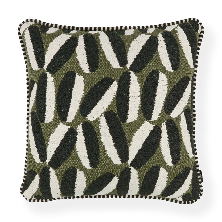 A striking combination of texture and colour, the Timor Outdoor cushion features abstract oval shapes formed from tactile bouclé yarns and is enriched with a contrast stripe piping.
