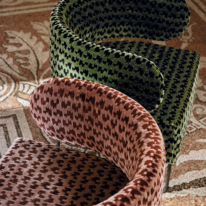 Animalistic in spirit, Koba is a striking cut and uncut épinglé velvet which is crafted to command attention. Presented in a palette of contrasting colourways, an intriguing interplay between matt and lustrous yarns adds to the alluring appeal.