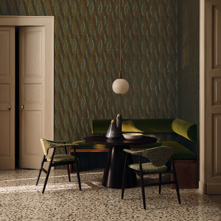 A celebration of the finest craftsmanship and exquisite materials, Zaida is a luxurious textile for walls featuring a statement geometric design. Woven using raffia-like yarns, a specialised fil coupé technique forms a dramatic fringe effect with a dynamic sense of movement.