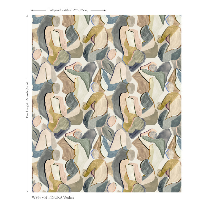 Dieses zeitgenössische Design ist eine verführerische Interpretation der weiblichen Form, inspiriert von abstrakten, wellenförmigen Skulpturen. Figura ist kunstvoll auf einen fein gewebten Stoff gedruckt, hinterlegt mit einem dezenten, durchschimmernden metallischen Grund.
