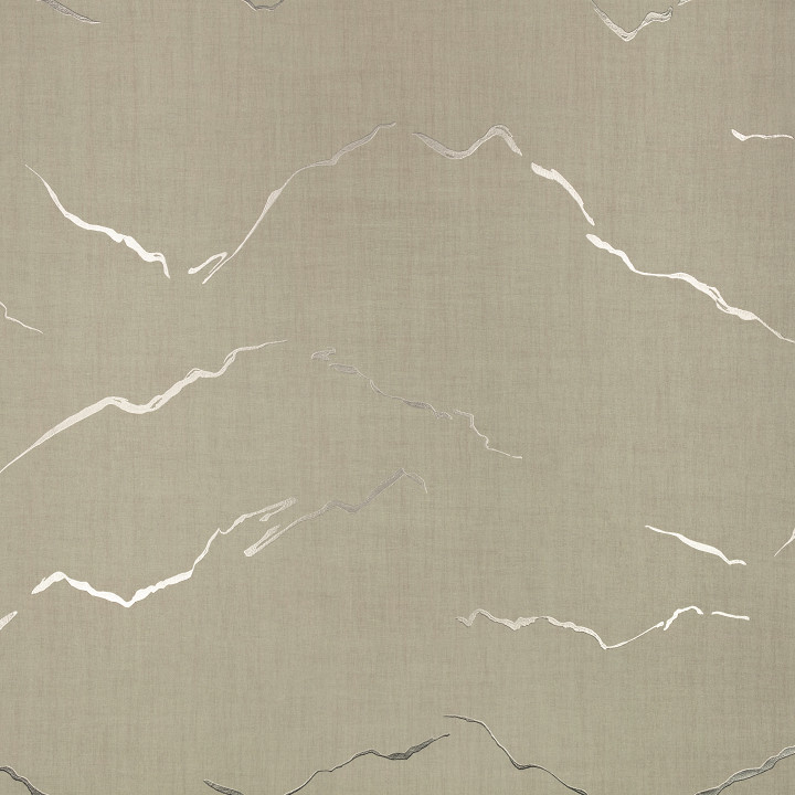Fließende metallische Linien fangen die Essenz des Einfachen ein, inspiriert von einer majestätischen Landschaft, die ein Gefühl von Ruhe und Gelassenheit ausstrahlt. Gedruckt auf einem seidenähnlichen Grund, entsteht dieses Design aus einem innovativen Schaumstoff für Tiefe, überzogen mit einer Metallfolie für einen Hauch von Glanz.