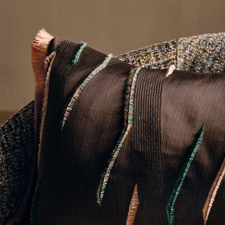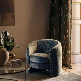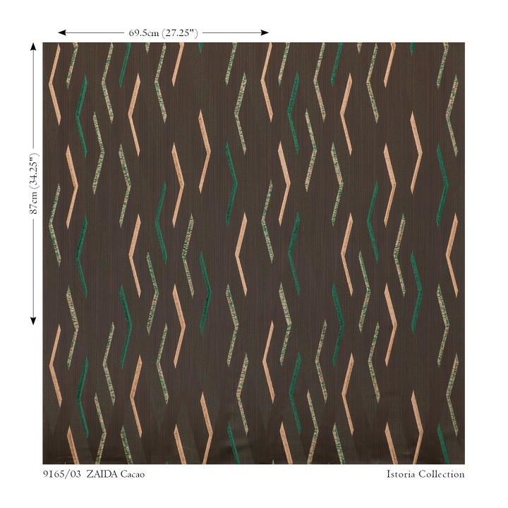 Un llamativo diseño geométrico, Zaida se fabrica utilizando una técnica fil coupé especializada donde hilos cortados estallan para crear un efecto flecado dramático. Presentado en un fondo strié fino formado de una combinación única de hilos lustrosos, se introduce un sentido complejo de movimiento e intéres.