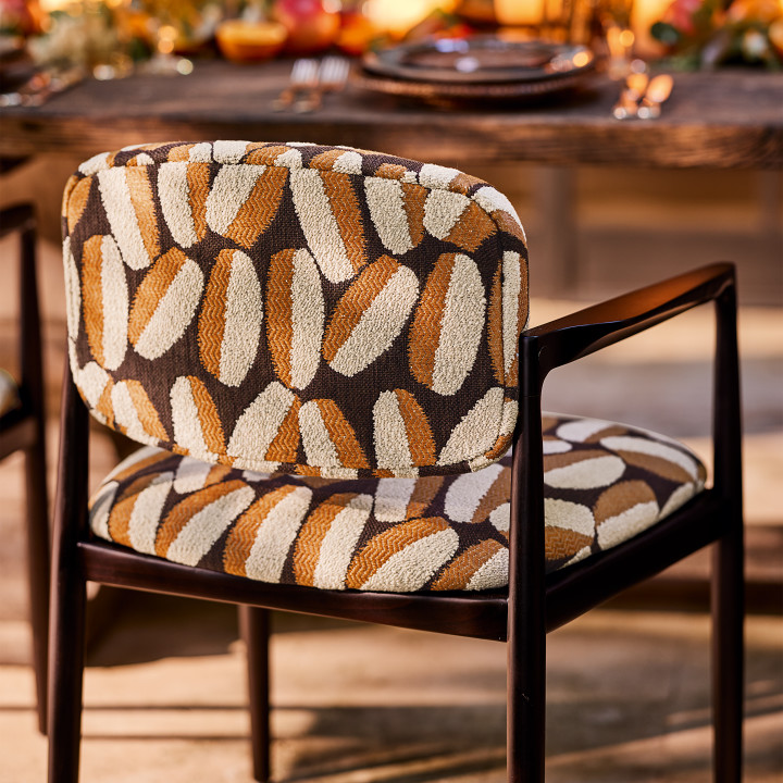 Timor Outdoor è una dichiarazione visiva di grande impatto che vede forme ovali astratte formate da filati bouclé tattili abilmente integrati in una trama jacquard per creare un gioco di texture accattivante. Presentato in una palette di colori audaci e contemporanei, il risultato è un tessuto per esterni di grande effetto, che non passa inosservato.